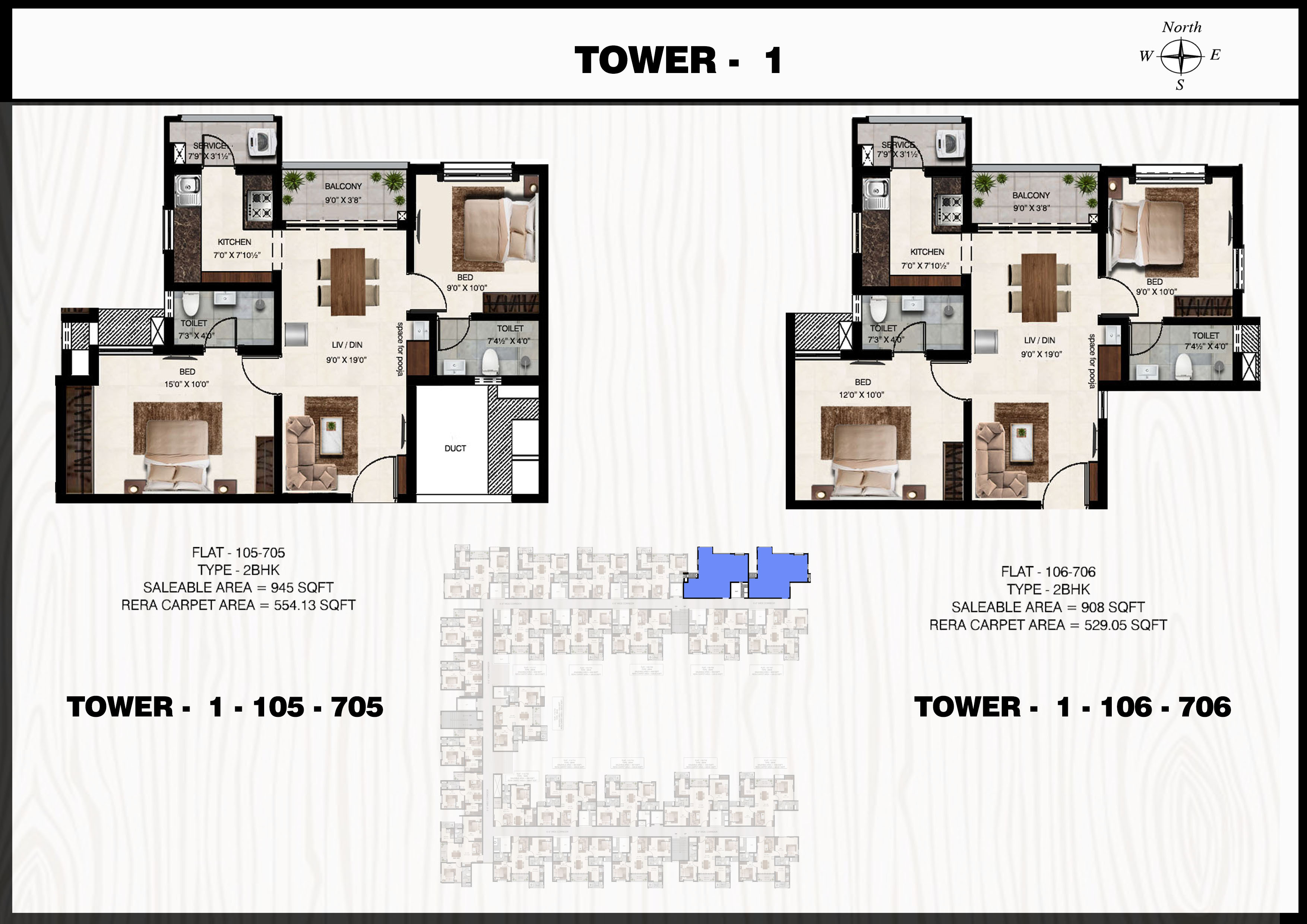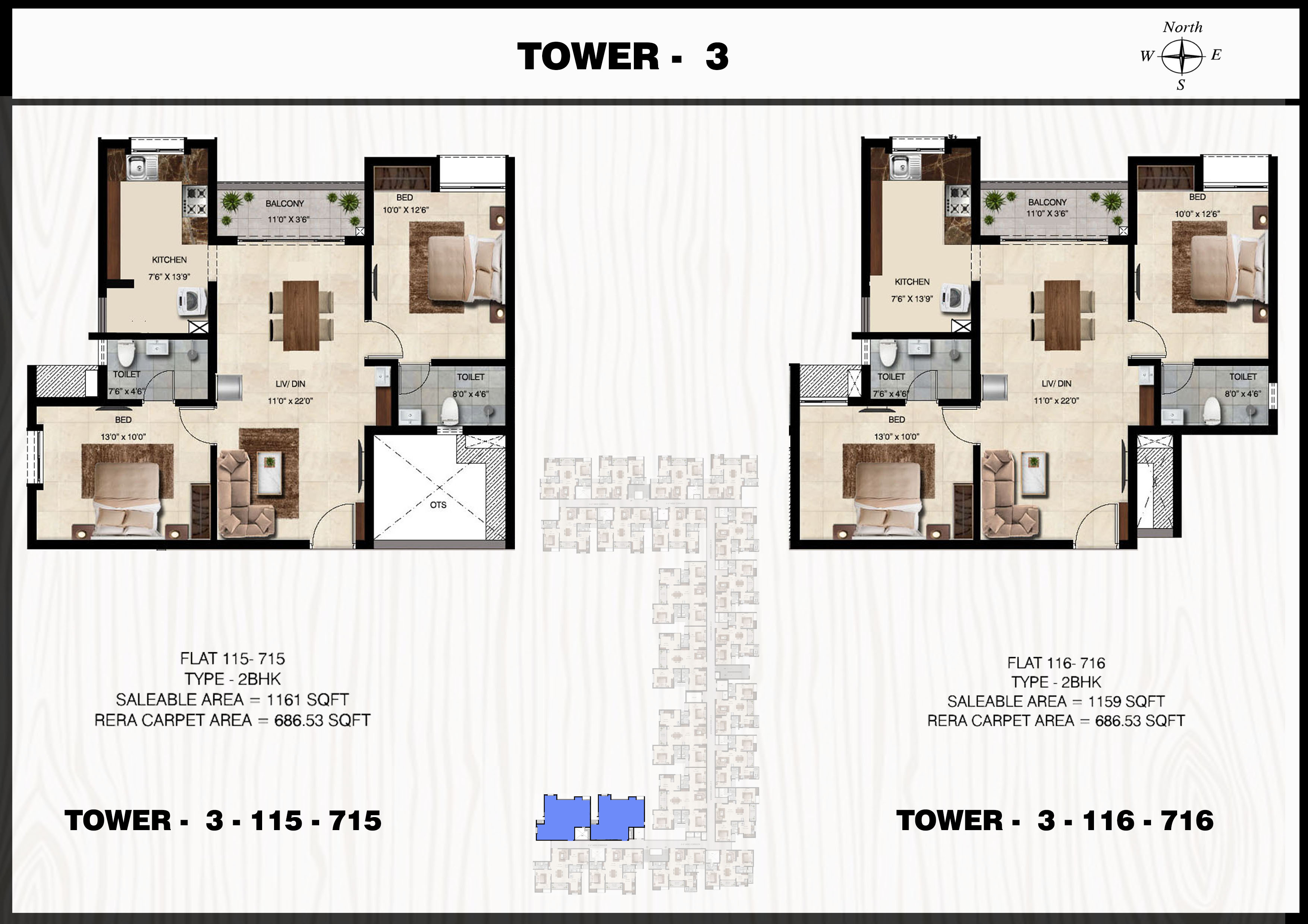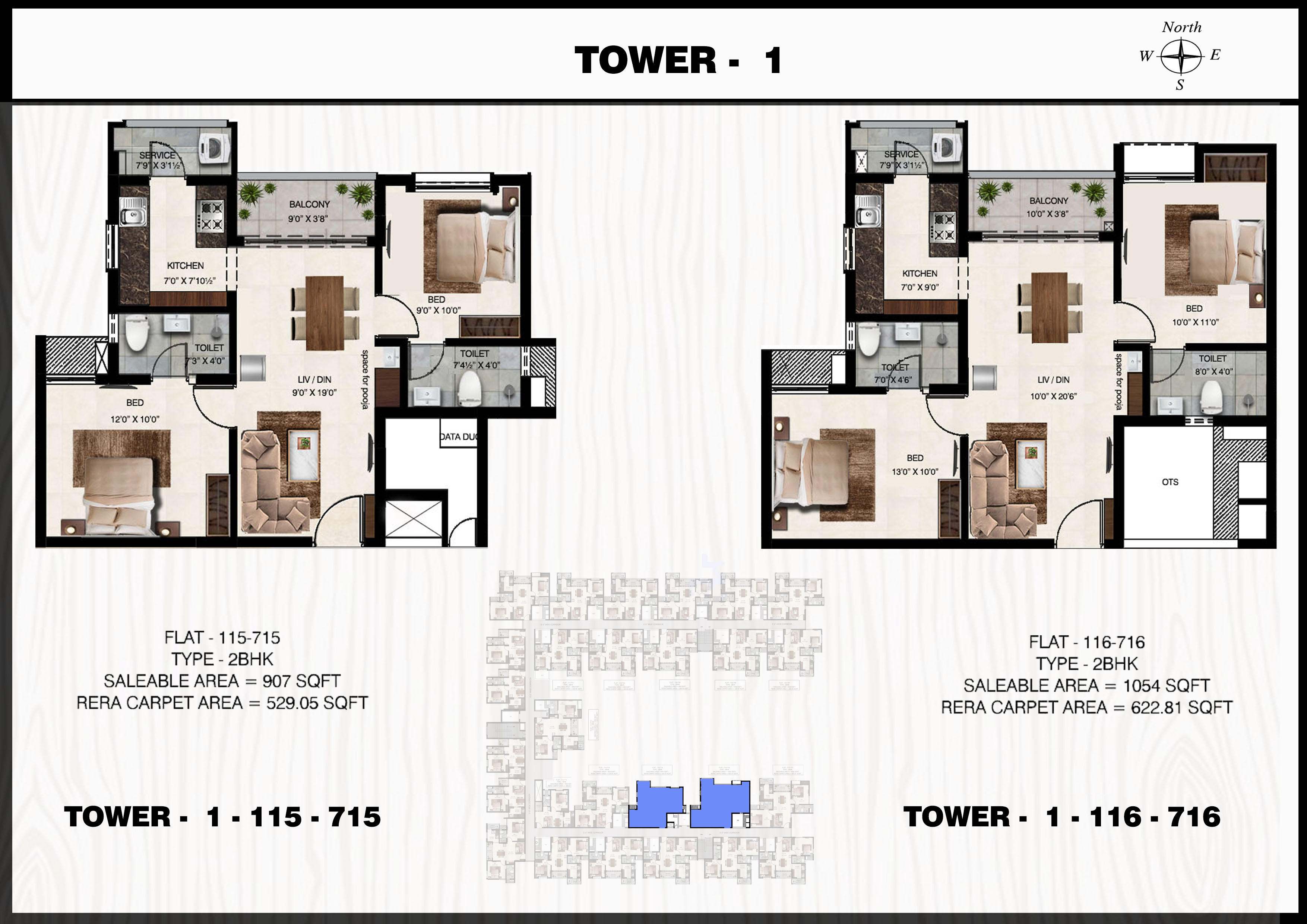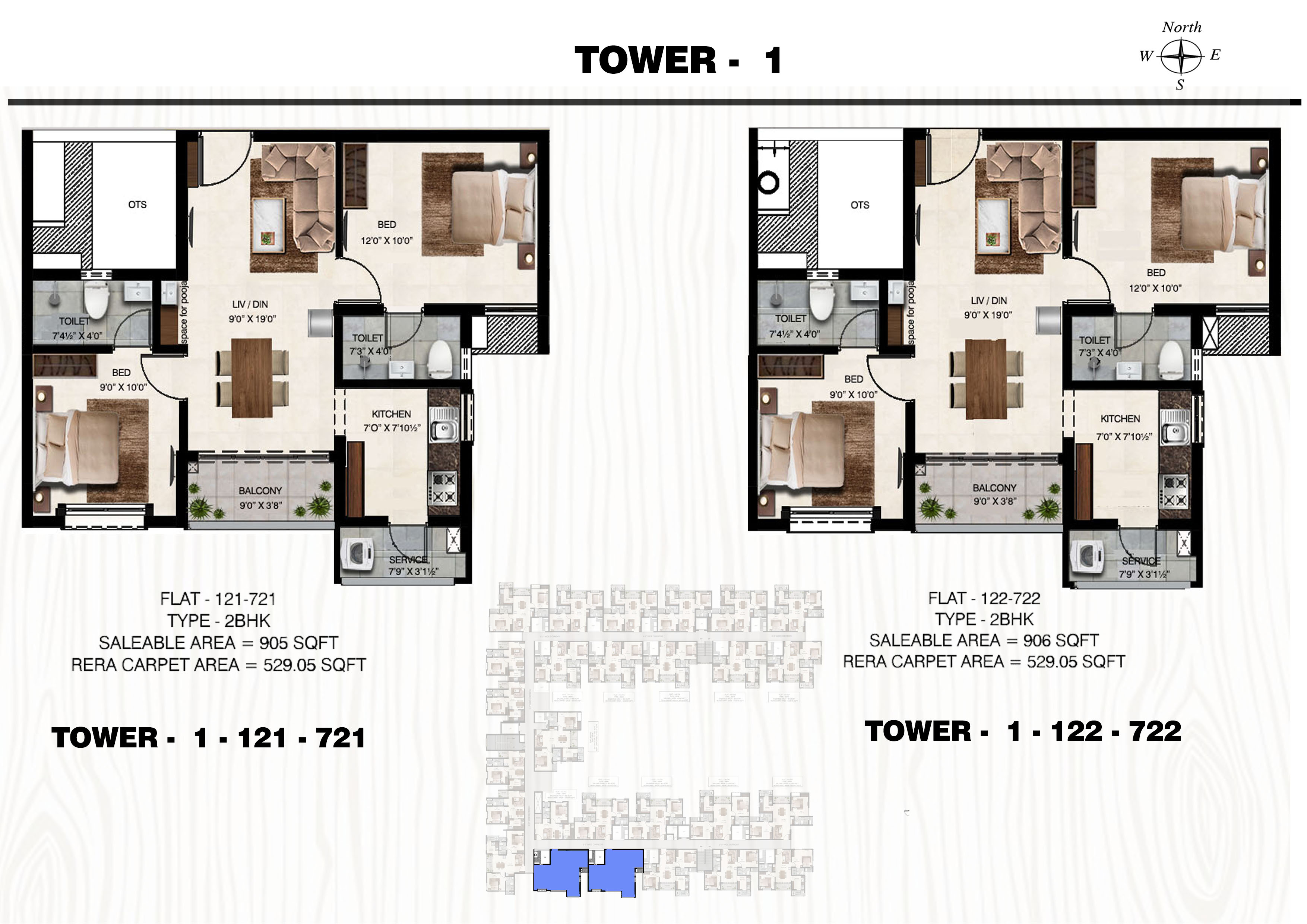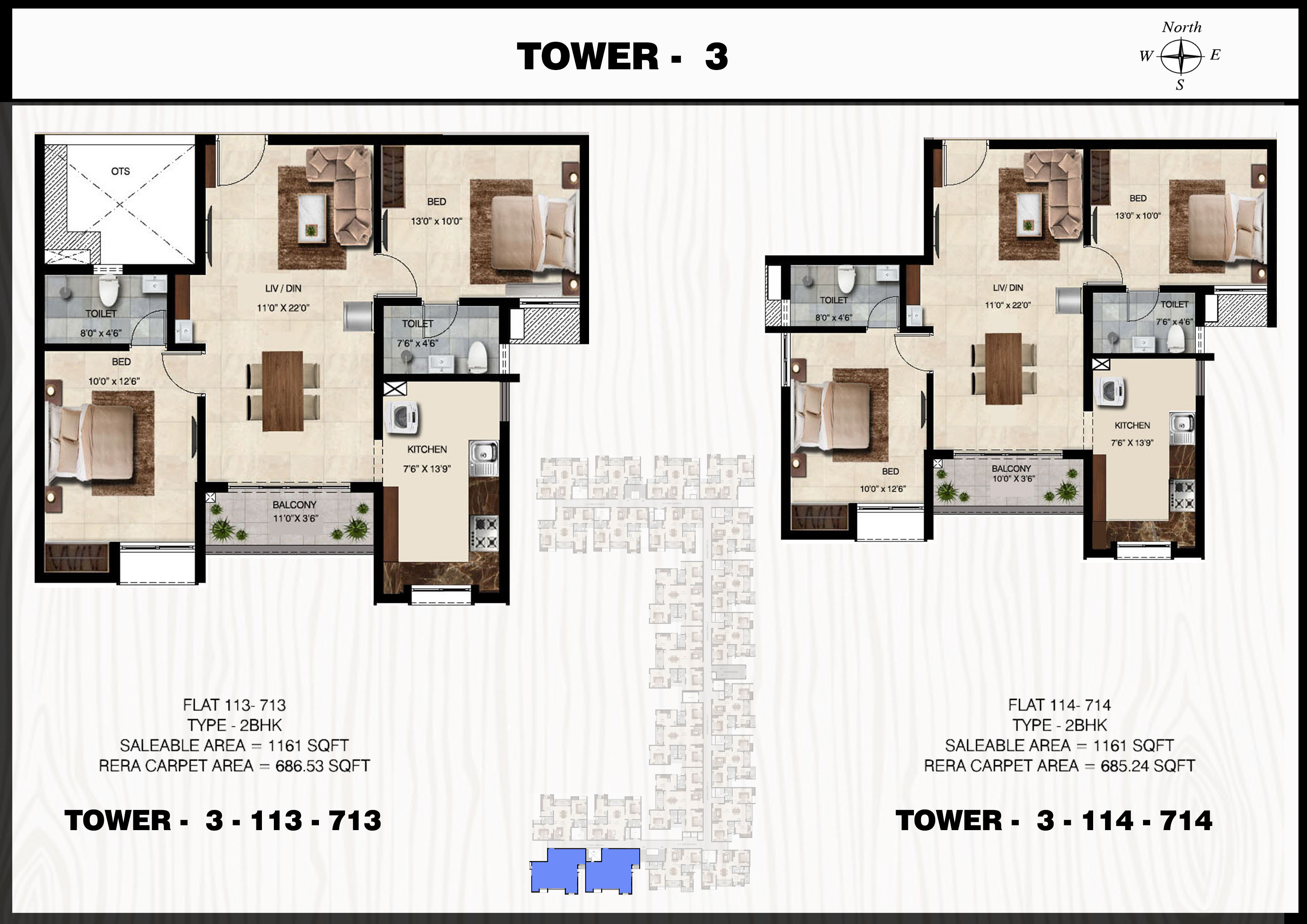 Flat: 114 to 714 (2 BHK)