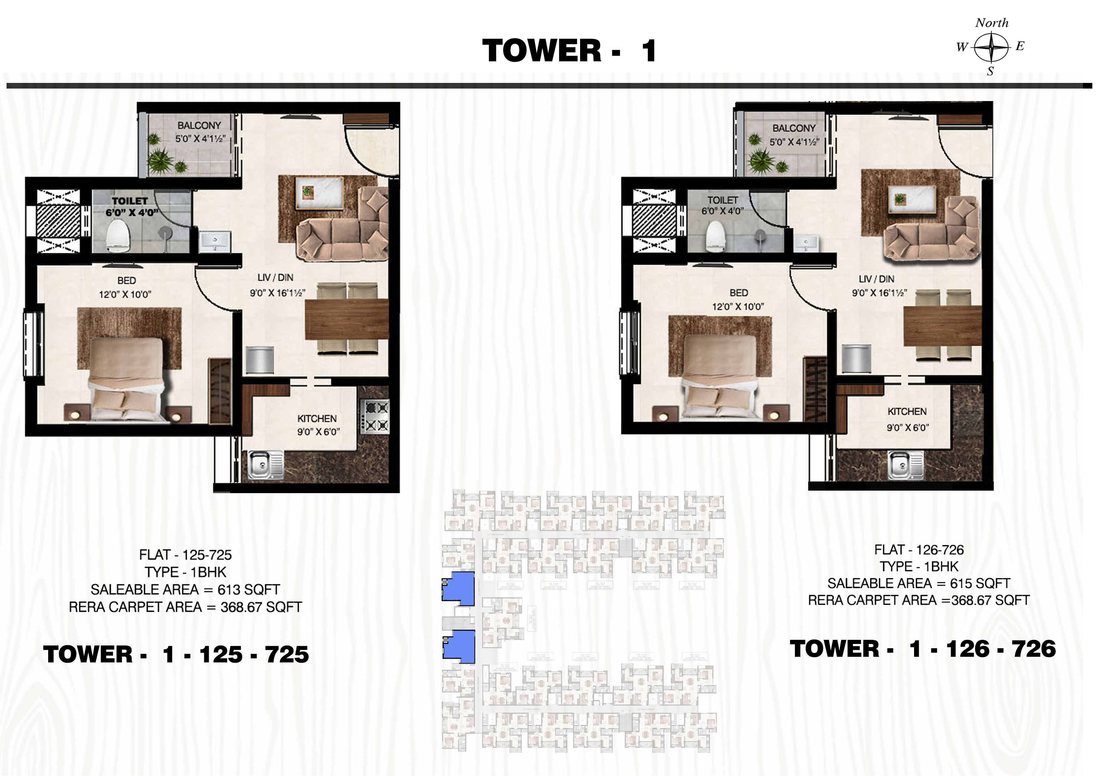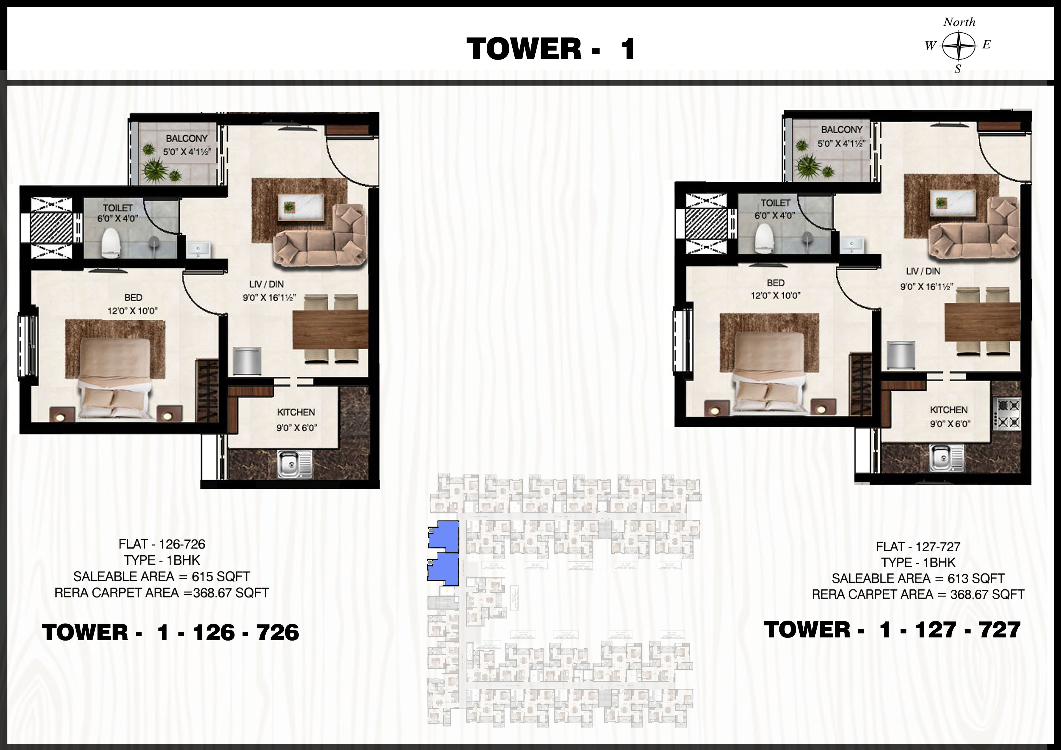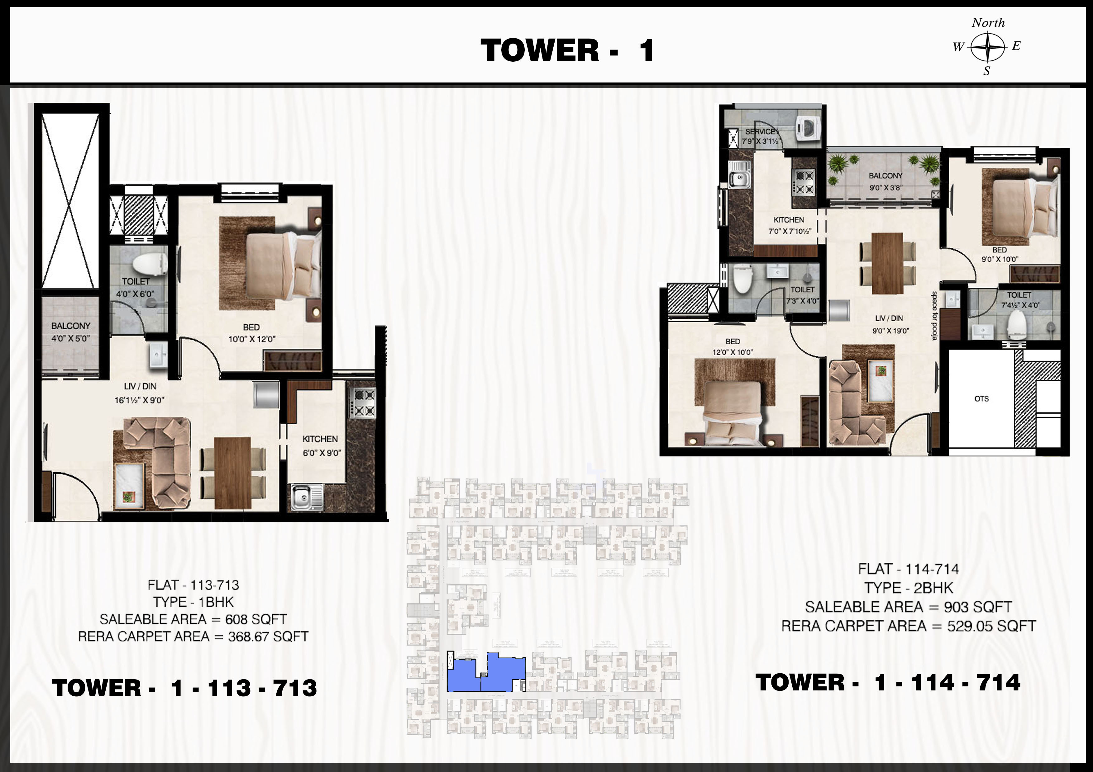 Flat: 113 to 713 (1 BHK)